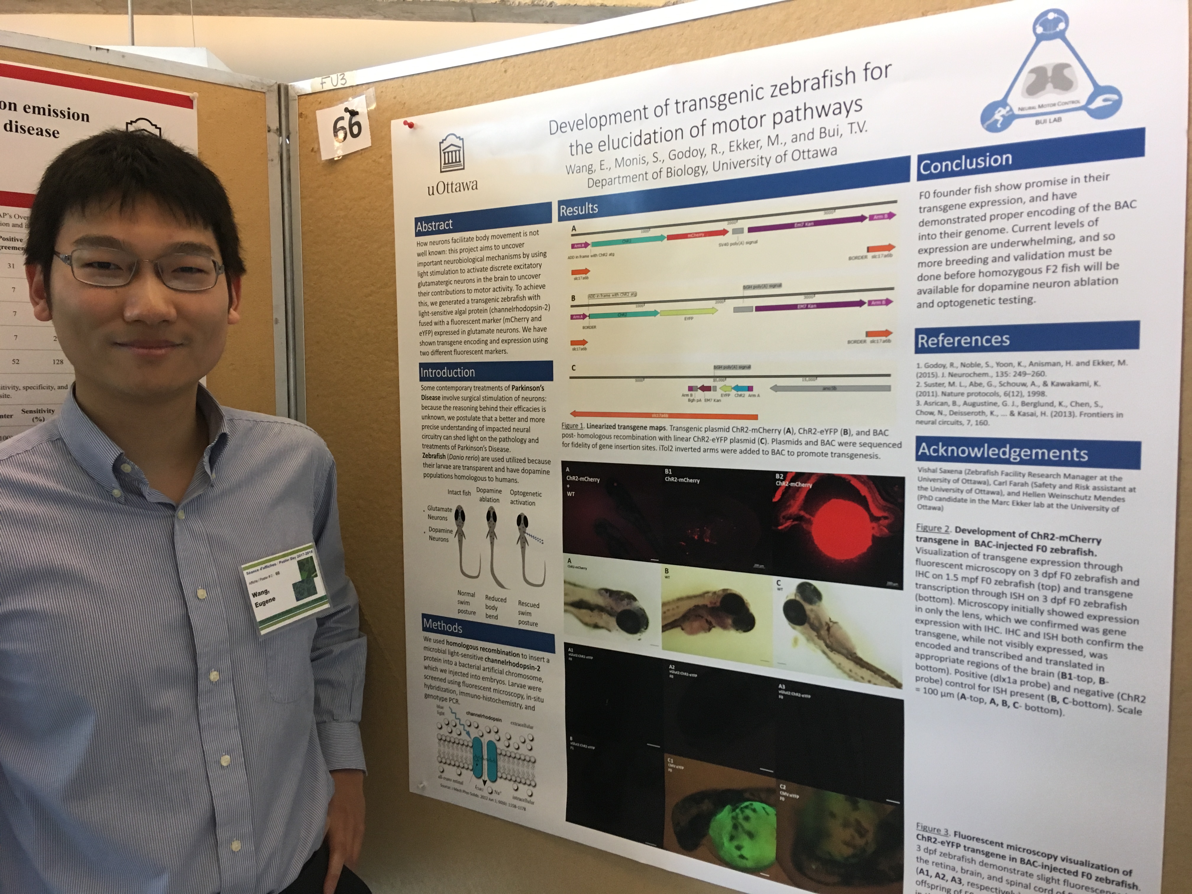 More presentation news. Emam Khan presented a talk at this year’s Ottawa-Carleton Institute of Biology conference. Shahriar Nasiri received an award for top undergraduate poster at Brain Health Research Day organized by the uOttawa Brain and Mind Research Institute. And Stephanie Gaudreau gave a talk at the Canadian Zebrafish Research Community meeting in Montreal