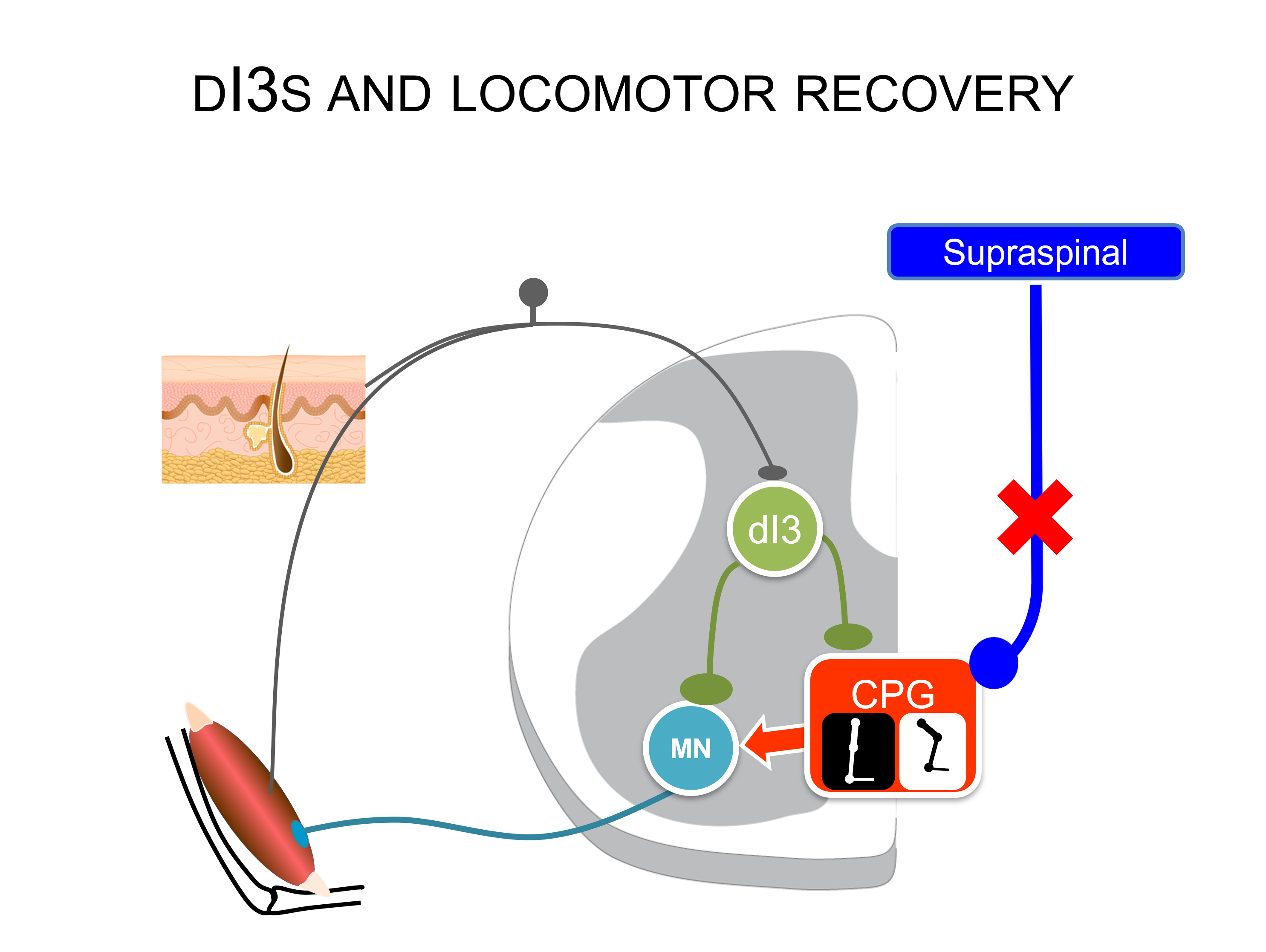 A number of experiments are currently underway to determine the effect of inhibiting or stimulating dI3 neurons on recovery of various movements after spinal cord injury.